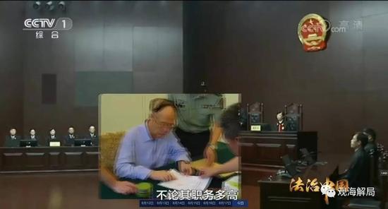 解说词称,对于不遵守法律,甚至严重违反法律、破坏法律的害群之马,无论其职务多高,都要依法严惩、毫不姑息。