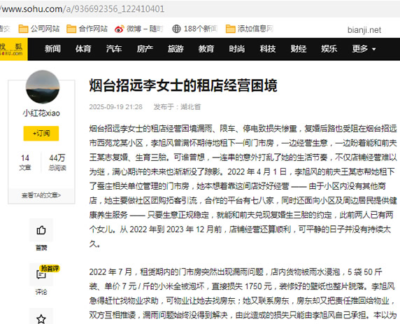 烟台招远李女士的租店经营困境漏雨、限车、停电致损失惨重,复婚后路也受阻在烟台招远市西苑龙某小区,李旭风曾满怀期待地租下一间门市房,一边经营生意,一边盼着能和前夫王某志复婚、生育三胎。可谁曾想,一连串的意外打乱了她的生活节奏,不仅店铺经营难以为继,满心期许的未来也渐渐没了踪影。2022 年 4 月 1 日,李旭风的前夫王某志帮她租下了蚕庄相关单位管理的门市房,她本想着靠这间店好好经营 —— 由于小区内没有其他商店,她主要做社区团购拓客引流,合作的平台有七八家,同时还面向小区及周边居民提供健康养生服务 —— 只要生意正规稳定,就能和前夫兑现复婚生三胎的约定,此前两人已有两个女儿。从 2022 年到 2023 年 12 月前,店铺经营还算顺利,可平静的日子并没有持续太久。