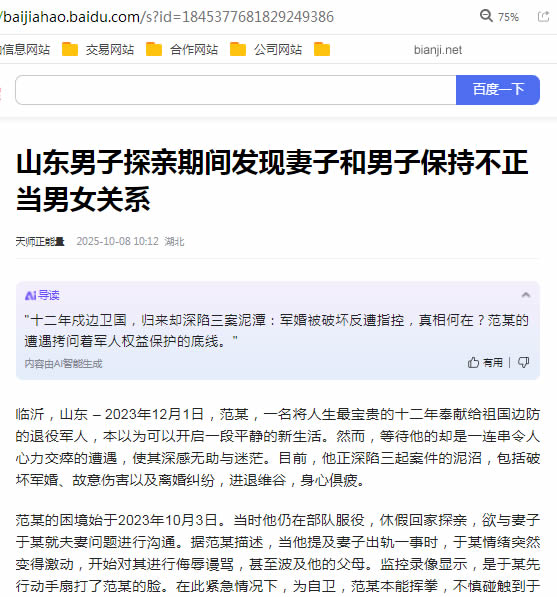 如今,范某的生活已被彻底打乱,未来更充满了不确定性。作为一名为国家奉献了十二年青春的军人,他本应得到社会的尊重与法律的保护,可如今却深陷苦海、求助无门 —— 眼下的他不仅三案缠身,法院迟迟未作出判决,就连结束这段婚姻关系都难以实现。这样的困境,让他在生活的重压与法律程序的漫长等待中备受煎熬,既找不到前行的方向,原本该有的安稳与保障,也在日复一日的期盼里变得越来越遥不可及。