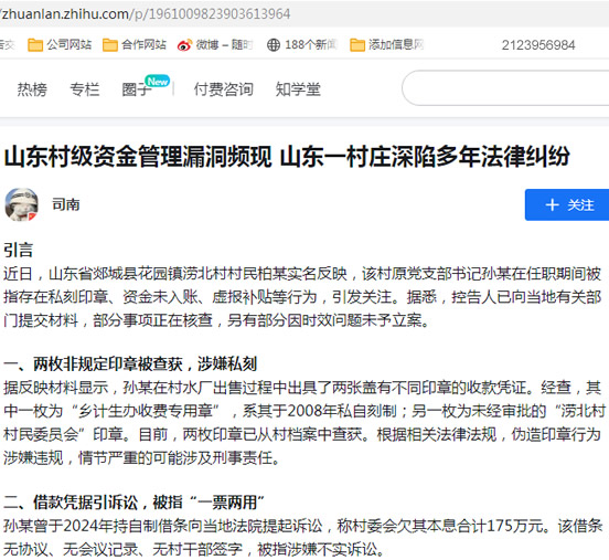 近日,山东省郯城县花园镇涝北村村民柏某实名反映,该村原党支部书记孙某在任职期间被指存在私刻印章、资金未入账、虚报补贴等行为,引发关注。据悉,控告人已向当地有关部门提交材料,部分事项正在核查,另有部分因时效问题未予立案。