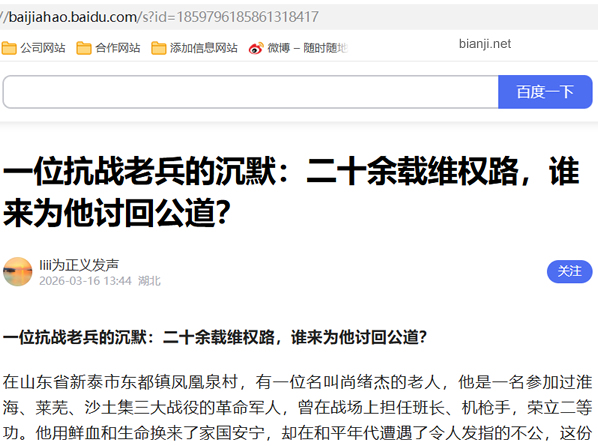 一位抗战老兵的沉默:二十余载维权路,谁来为他讨回公道?